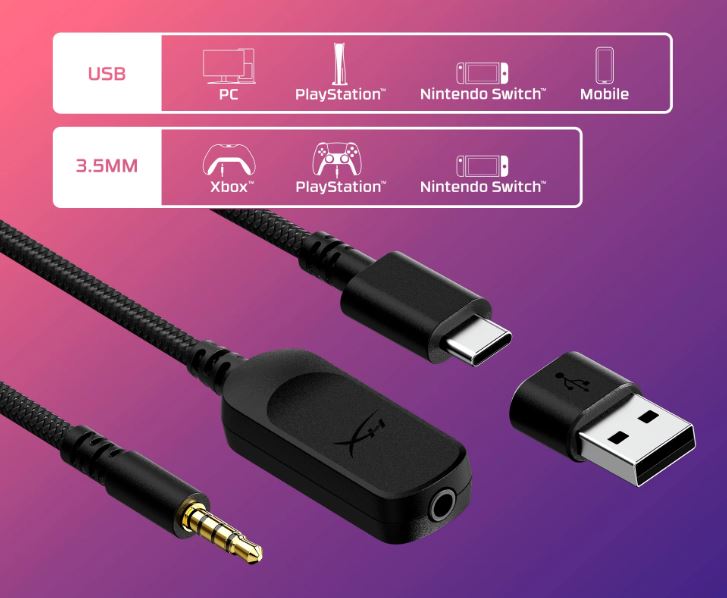 Cloud III je kompatibilnĂ s PC, PS5, PS4, Xbox Series X|S, Xbox One, Nintendo Switch, Mac a mobilnĂmi zaĹ™ĂzenĂmi. 3,5 mm, USB-A a USB-C konektory jsou zahrnuty pro maximálnĂ kompatibilitu, bez ohledu na to, jak hrajete.