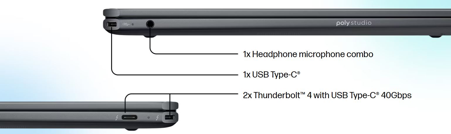 * 2x Thunderbolt™ 4 s USB Type-C® 40Gbps (USB Power Delivery, DisplayPort™ 2.1, HP Sleep and Charge)