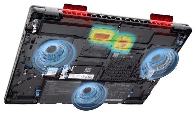 Nové trojité ventilátory s vysokou hustotou a konstrukce pantů optimalizují tepelné odvětrávání, což z něj činí vysoce výkonné chladicí řešení na nejvýkonnějším ZBooku od HP.