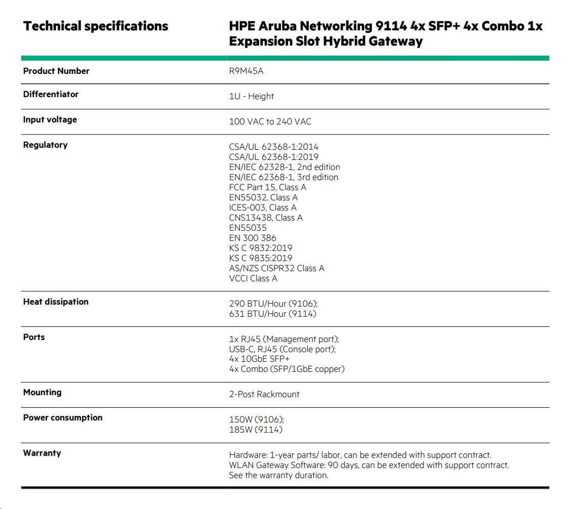 HPE Aruba Networking 9114 4x SFP+ 4x Combo 1x Expansion Slot Hybrid Gateway.