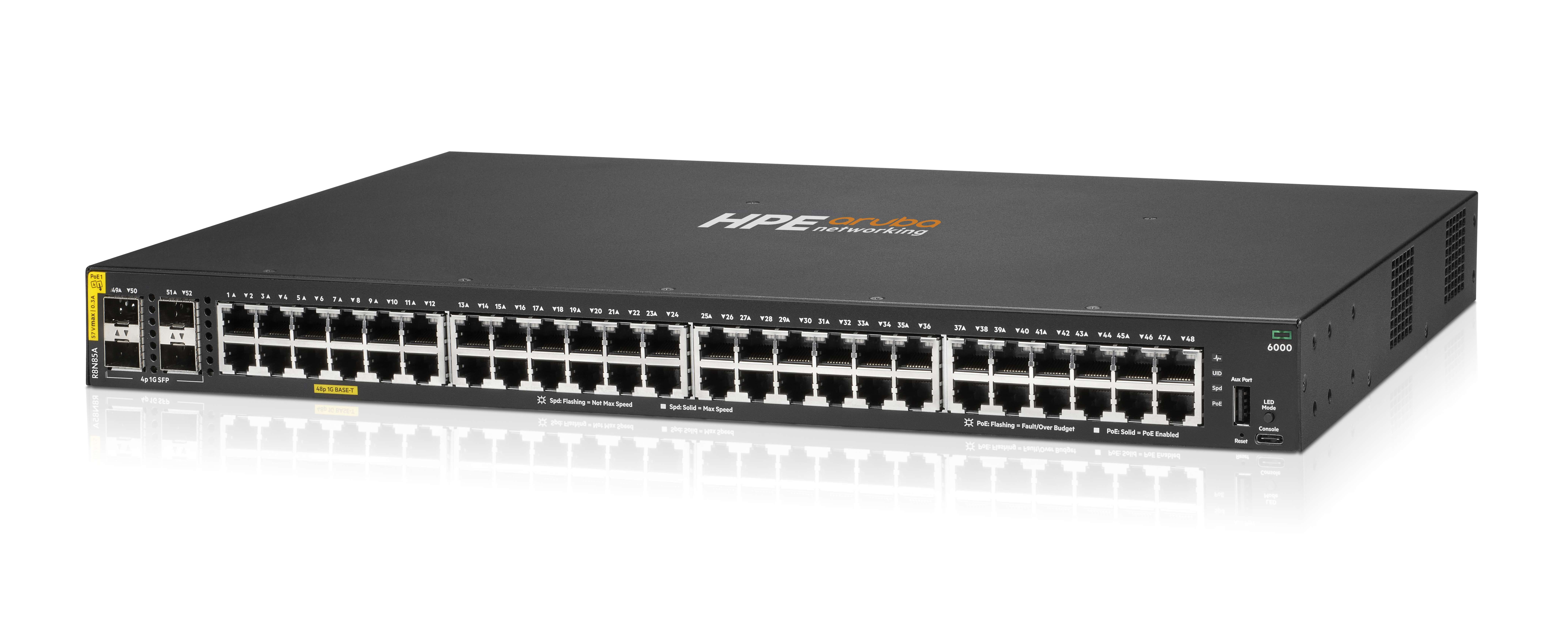 HPE Aruba Networking CX 6000 48G Class4 PoE 4SFP 370W Switch R8N85A RENEW