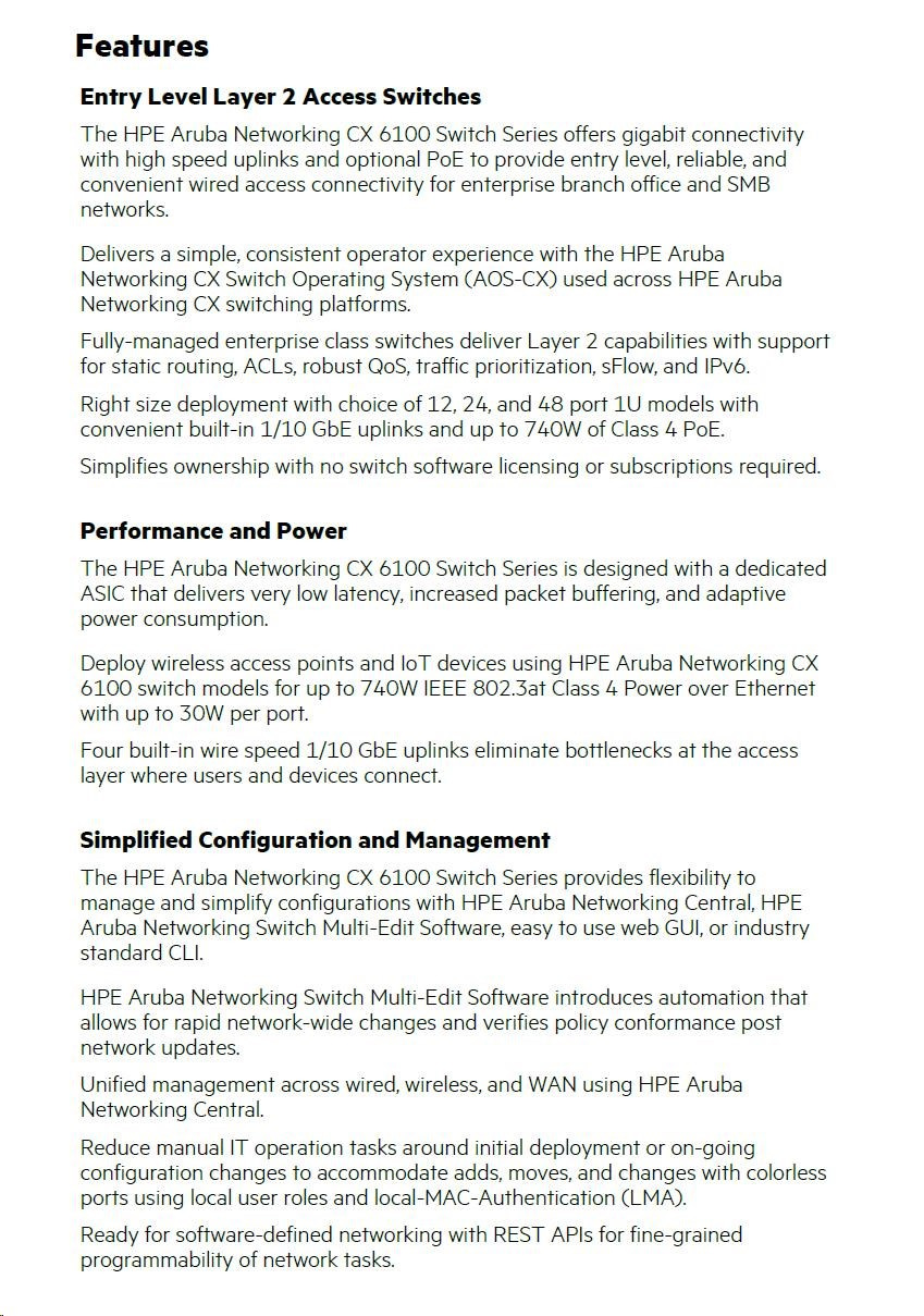 HPE Aruba Networking CX 6100 48G 4SFP+ Switch RENEW JL676AR#ABB.