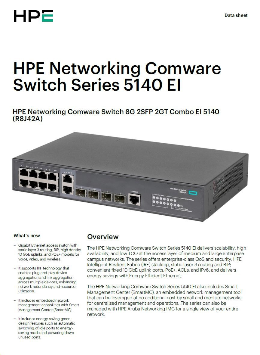 HPE Networking Comware Switch 8G 2SFP 2GT Combo EI  5140  R8J42AR RENEW