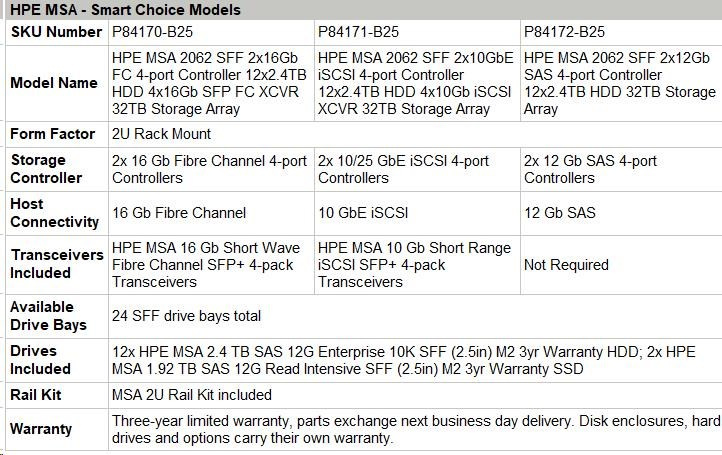 HPE MSA 2060 LFF 2x16Gb FC 4-port Controller 7x8TB HDD 4x16Gb SFP FC XCVR 56TB Storage Array Smart Choice.