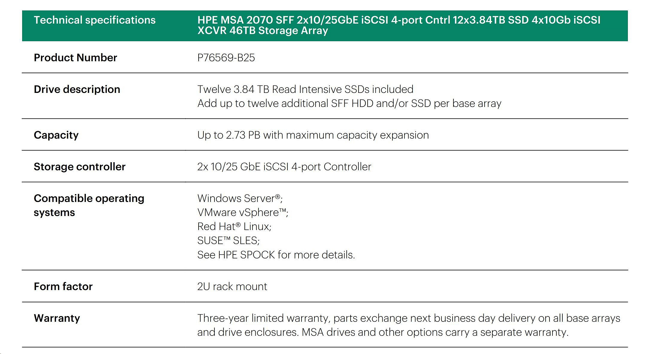 HPE MSA 2060 SFF 2x10/25GbE iSCSI Array.