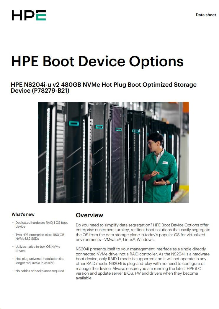 HPE NS204i-u v2 480GB NVMe Hot Plug Boot Optimized Storage Device P78279-B21 RENEW.