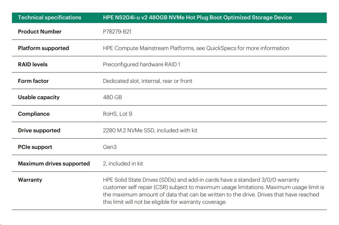 HPE NS204i-u v2 480GB NVMe Hot Plug Boot Optimized Storage Device