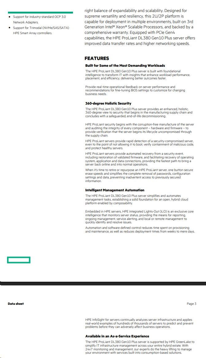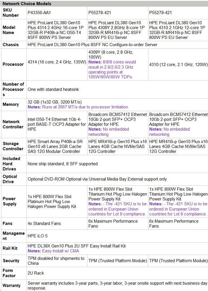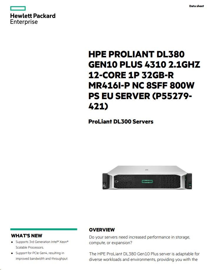 |   Model Name  |    HPE ProLiant DL380 Gen10 Plus 4310 2.1GHz 12-core 1P 32GB-R MR416i-p NC 8SFF 800W PS EU Server  |