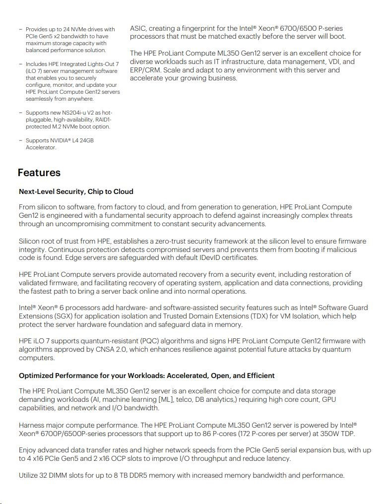 HPE PL ML350g12 6505P (2.2/12C) 1x32G (P69727) 2x4TB 4LFF MR408i-o2x1000W 1GbE NBD333 Smart Choice.