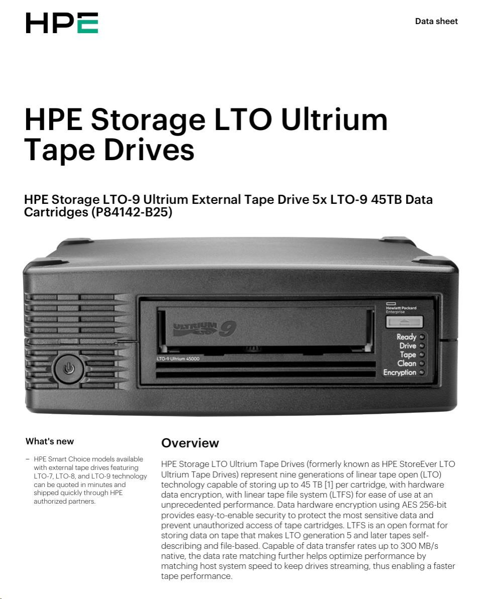 HPE Storage LTO-9 Ultrium External Tape Drive 5x LTO-9 45TB Data Cartridges