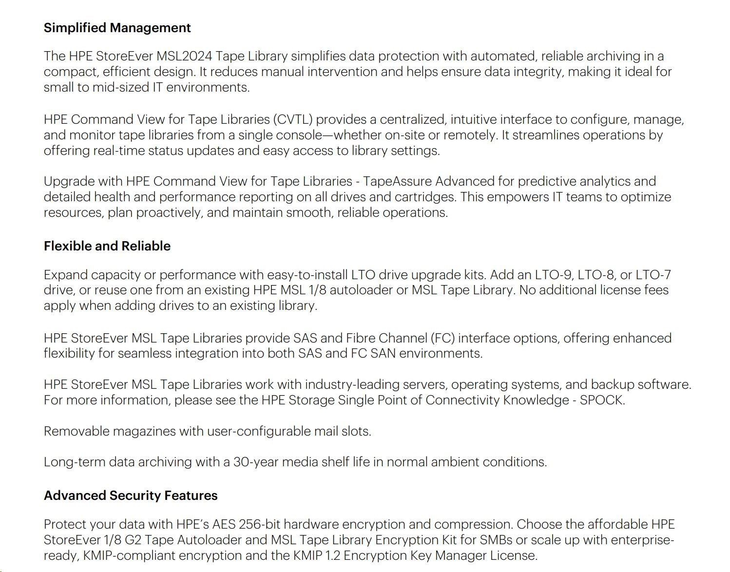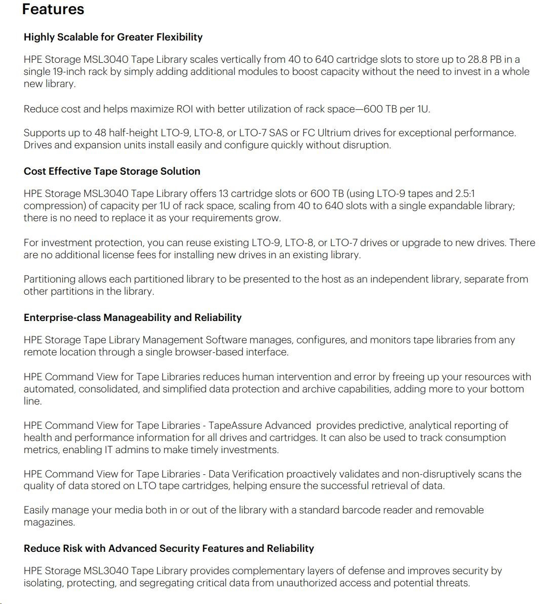 HPE Storage MSL3040 Tape Library 1x MSL LTO-9 Fibre Channel 20x LTO-9 45TB Data Cartridges.