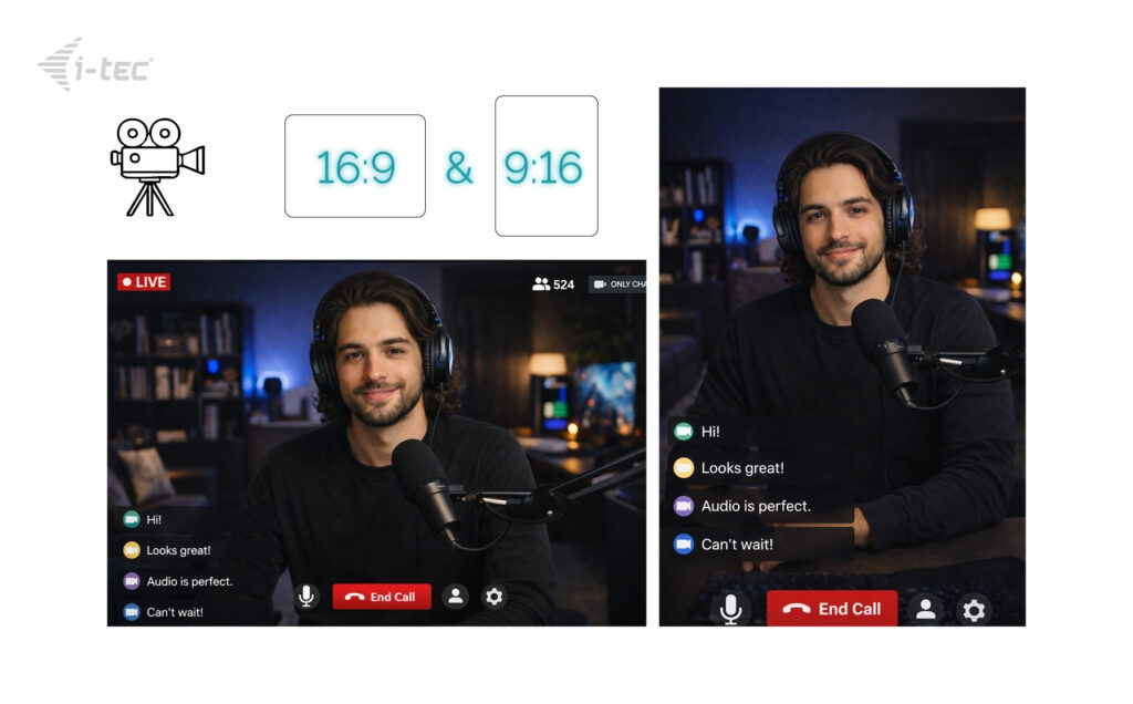 i-tec SOLOMON 700 STREAM je all-in-one řešení pro uživatele, kteří přesně vědí, co potřebují. Nabízí 4K rozlišení, podporu Full HD při 60 fps a možnost záznamu v poměrech stran 16:9 i 9:16 – ideální pro moderní tvorbu obsahu.