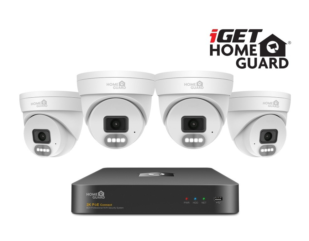 iGET HGNVK84804 - kamerový PoE set, 2K rozlišení, 8CH NVR + 4x kamera se zvukem, IR + LED, CZ app
