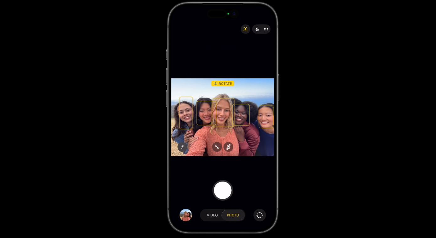 Nová pĹ™ednĂ kamera rozšĂřà tvoje moĹľnosti pĹ™i komponovánĂ fotek a videĂ. KlepnutĂm rozšĂřÚ zornĂ© pole a bez pĹ™eklápÄ›nĂ iPhonu pĹ™epneš mezi orientacĂ na výšku a na šĂĹ™ku. A kdyĹľ se do zábÄ›ru pĹ™idajĂ kamarádi, zornĂ© pole kamery se rozšĂĹ™Ă, aby se vás do selfĂÄŤka vešlo vĂc.