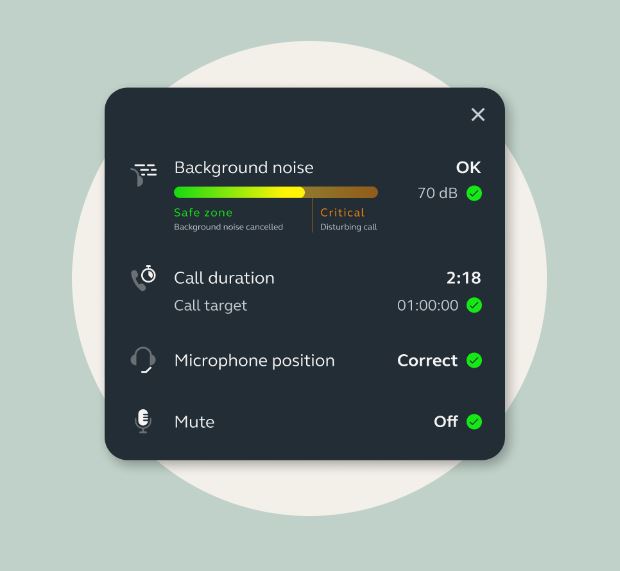Engage+ poskytuje ĹľivĂ© pokyny k faktorĹŻm ovlivĹujĂcĂm zážitek z hovoru vašeho zákaznĂka, vÄŤetnÄ› hluku v pozadĂ, ticha a pĹ™erušenĂ.