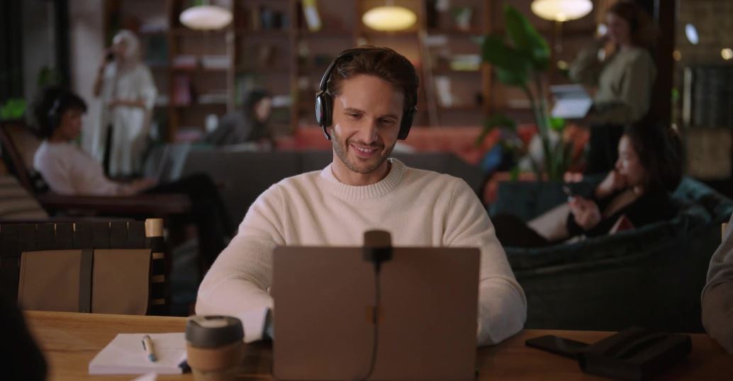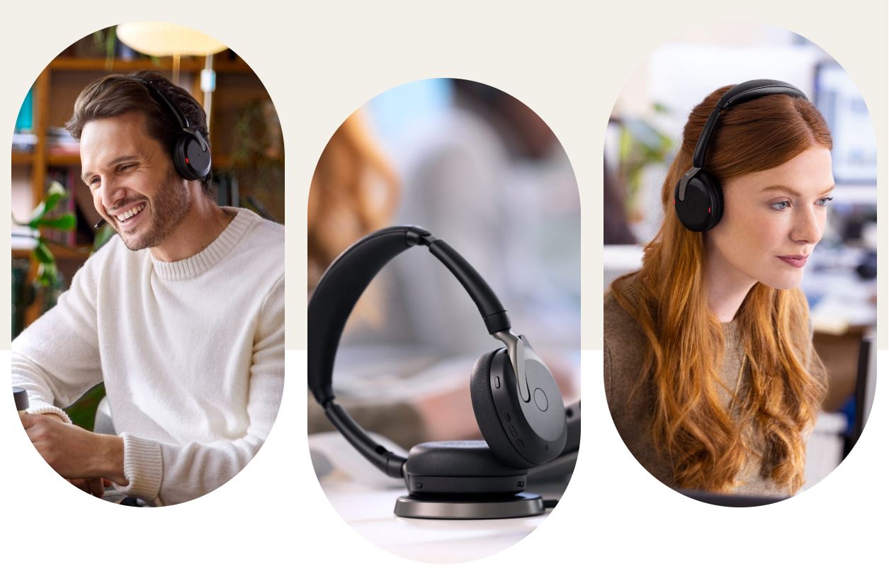 Nebojte se. Evolve2 65 Flex proĹ™Ăzne zvuky v pozadĂ, abyste pĹ™i hovorech a virtuálnĂch schĹŻzkách znÄ›li ostĹ™e a velmi elegantnÄ›, aĹĄ jste kdekoli.