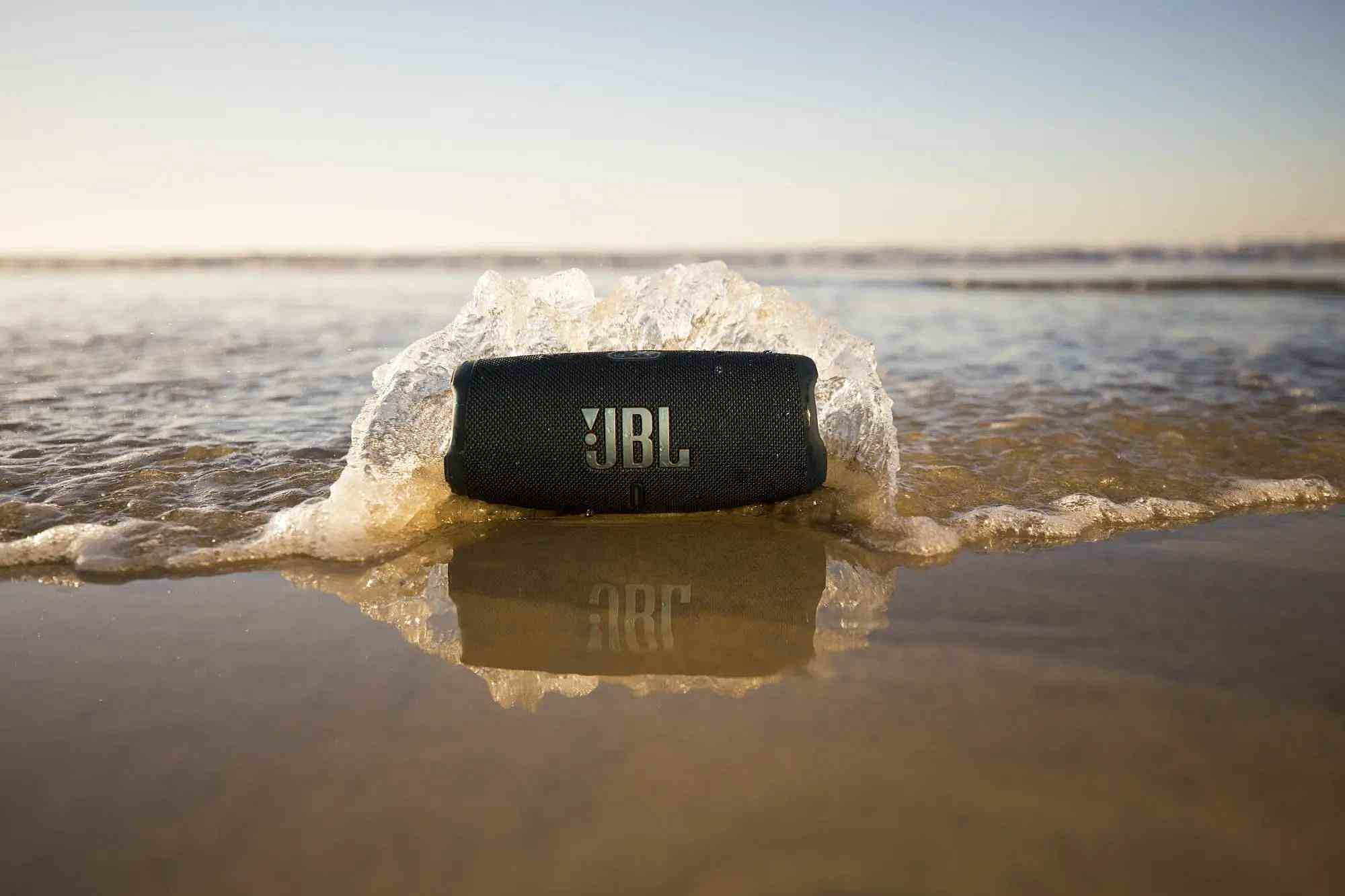 Pokud posloucháte muziku rádi i na pláži nebo třeba při grilování venku, pak vás reproduktor JBL Charge 5 potěší svou zvýšenou odolností. Pyšní se certifikátem IP67, dle kterého je odolný vodě i prachu, takže si ho budete moct vzít kam jen budete chtít. Navíc se díky své přiměřené velikosti a hmotnosti 960 g dobře přenáší