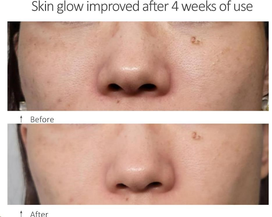 - Viditelné výsledky již za 4 týdny: Klinické testy prokazují zlepšení jasu pleti, zesvětlení skvrn a zmírnění zarudnutí.