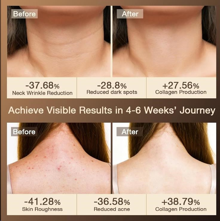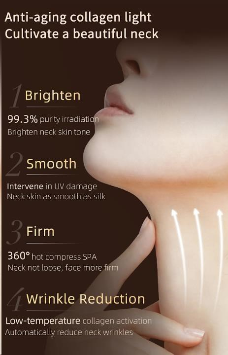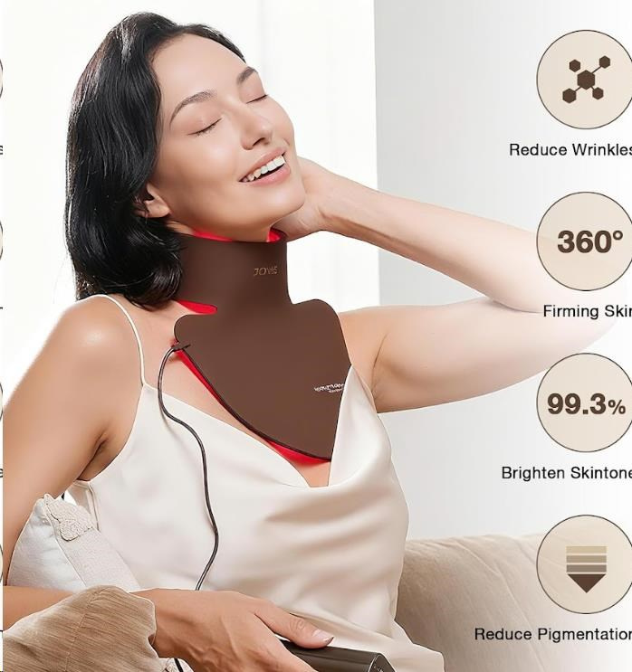 Tato unikátní maska byla navržena tak, aby dokonale pokryla nejen krk, ale i celý hrudník a horní část zad. Klíčový rozdíl oproti běžným maskám spočívá v cíleném, konturovaném designu, díky kterému těsně obepíná a ošetřuje oblast krku, dekoltu a horní části zad. Využívá klinicky ověřenou sílu vysoce čistého červeného světla o vlnové délce 660nm, které je standardem v profesionální dermatologické péči. Světlo proniká hluboko do pokožky, kde stimuluje produkci kolagenu, zrychluje regeneraci buněk a pomáhá napravovat poškození způsobené UV zářením. Výsledkem je viditelně pevnější, hladší a barevně sjednocená pokožka.