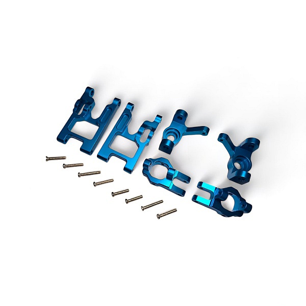 Kovová sada předních ramen, těhlic a jejich závěsů pro model Across- modré