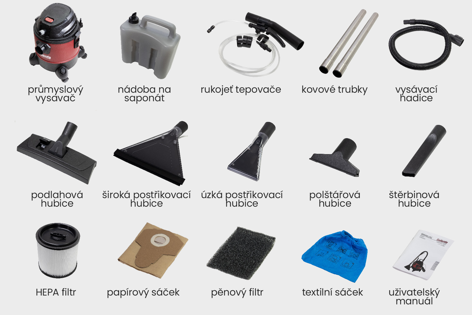 Salente Combo 4v1, vysavaÄŤ pro mokrĂ© a suchĂ© vysávánĂ, tepovaÄŤ, fukar
