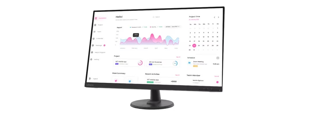 Monitor Lenovo D32-40 efektivně uspokojí vaše potřeby v oblasti práce z domova nebo zábavy. Jeho 31,5palcová obrazovka je dostatečně velká pro sledování filmů nebo prohlížení více dokumentů vedle sebe. Jeho panel VA s bezrámečkovou konstrukcí ze tří stran vám poskytne široký přehled. Monitor díky 99% barevnému gamutu sRGB zobrazuje hlubokou černou a vykresluje živé barvy. A rozlišení Full HD (1920 × 1080) zajišťuje skvěle detailní obraz a nabízí neuvěřitelný zážitek ze sledování.
