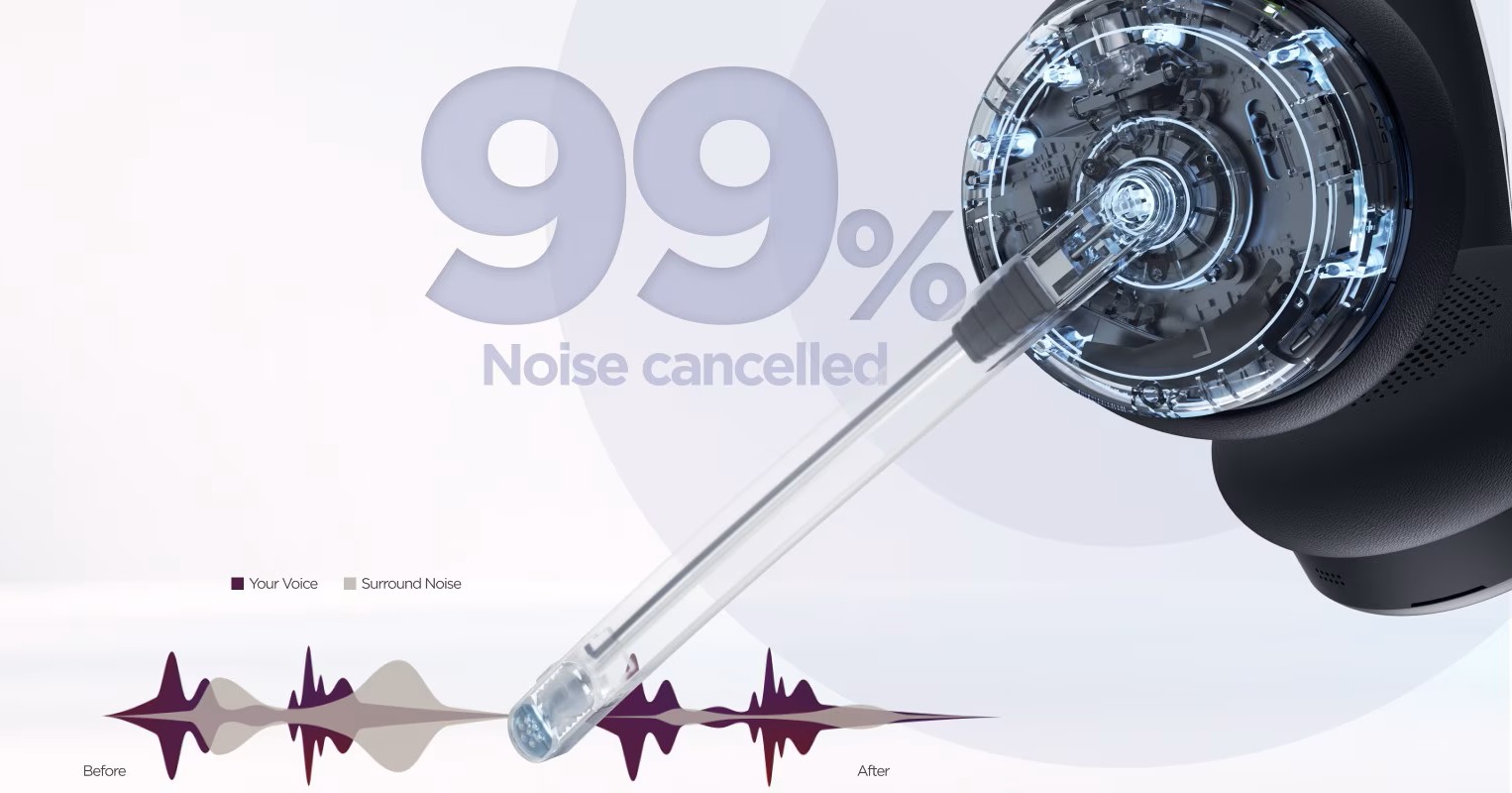 Eliminujte až 99 % okolního hluku pomocí ENC s podporou AI, aby váš hlas zněl jasně a zřetelně bez ohledu na prostředí.