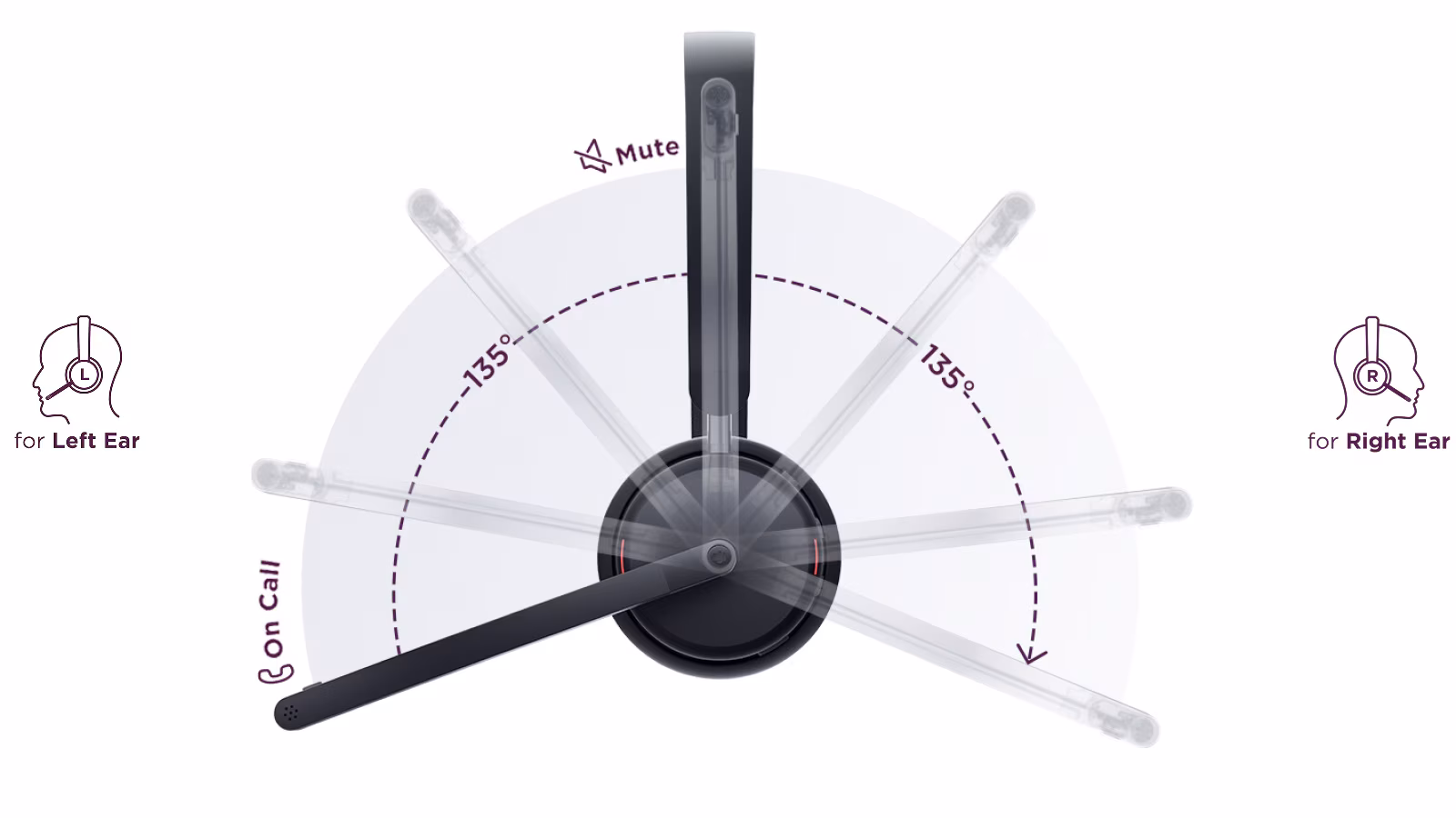 Přepněte mikrofon na kteroukoli stranu pro maximální pohodlí, rychlejší zpracování hovorů a perfektní přizpůsobení každému uživateli. Sklopte mikrofon dolů, abyste zrušili ztlumení a přijali hovor – rychle, intuitivně a bez námahy.
