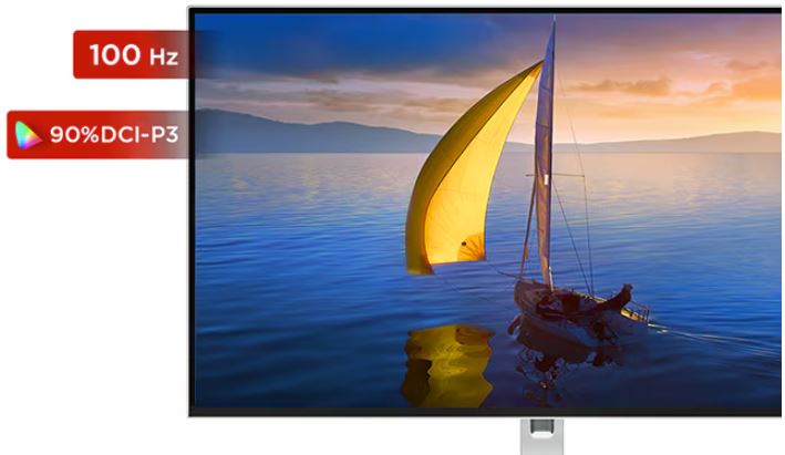 Užijte si vynikající barvy a čistotu s 90% barevným gamutem DCI-P3 a kontrastním poměrem 1500:1. Oceňte ostrý a bezproblémový zážitek s obnovovací frekvencí monitoru 100 Hz.