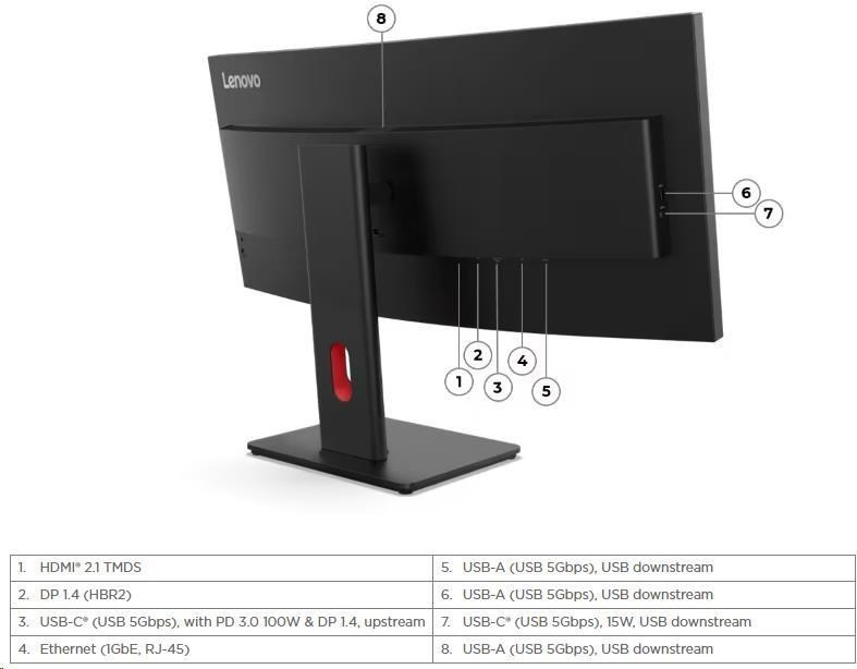 LENOVO LCD T34WD-40+MC60 - 34",VA,21:9,3440x1440,120Hz,300cd/m2,3000:1,4ms,HDMI,DP,USBHub,USB-C(100W PD),RJ45,Nákl,Zdvih