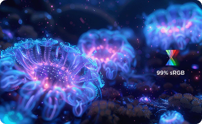 Špičkový barevný výkon s 99% pokrytím sRGB zajišťuje živý a přesný obraz, na který se můžete spolehnout.