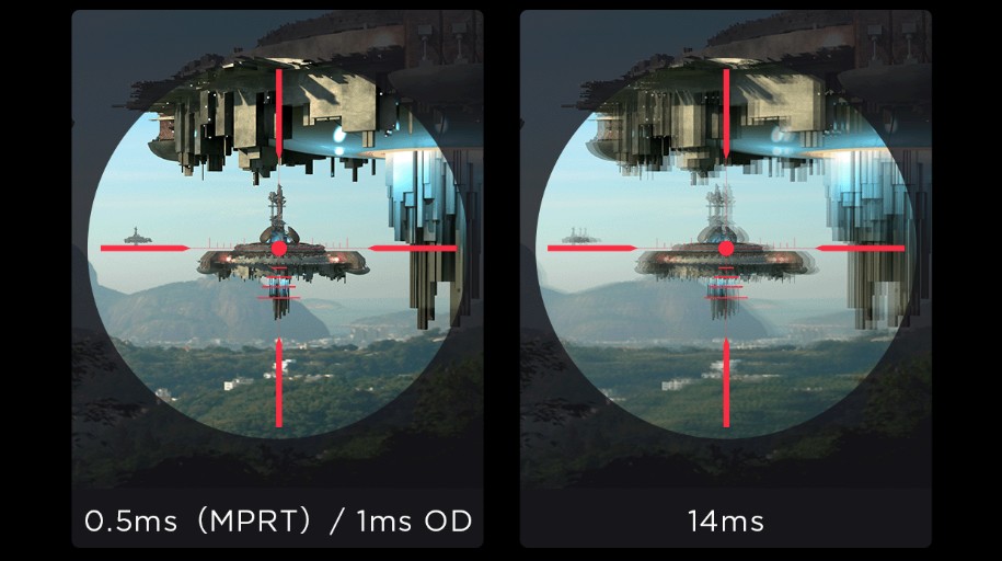 Díky odezvě 0,5 ms MPRT (1 ms OD) získáte výhodu v rychlosti a minimalizujete zpoždění vstupu, takže pokaždé zasáhnete svůj cíl rychleji.