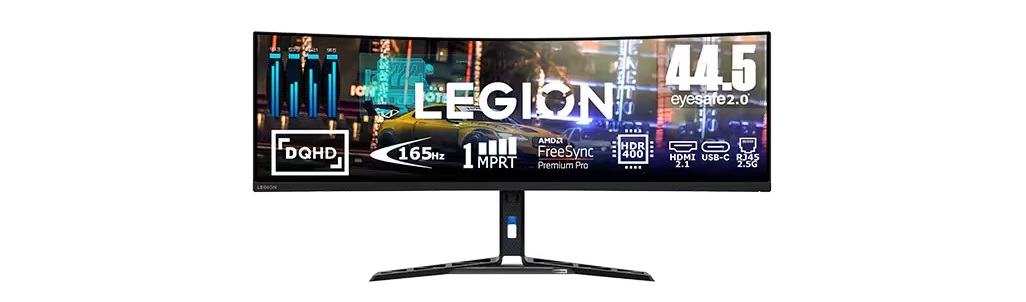 Monitor Legion R45w-30 s ultraširokým zakřiveným displejem vám přinese naprosto strhující herní zážitky. Poměr stran 32 : 9 a obří úhlopříčka 44,5" poskytují dokonalý přehled o akci a díky rozlišení DQHD 5120 × 1440 bude obraz perfektně ostrý. S tímto nadstandardně velkým 44,5palcovým monitorem dohlédnete do každého zákoutí bojiště. Ultraširoká obrazovka se zakřivením 1500R a poměrem stran 32 : 9 vás plně vtáhne do herního světa. Obrazovka s rozlišením 5120 × 1440 (DQHD) dokonale a ostře vykreslí každý detail herní scény.
