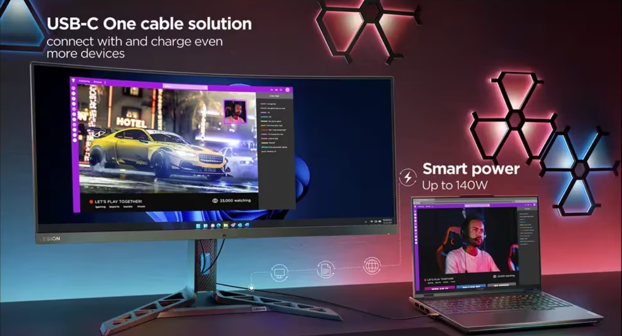 34” monitor|180Hz displej s rozlišením WQHD|Dokovací řešení s jedním kabelem