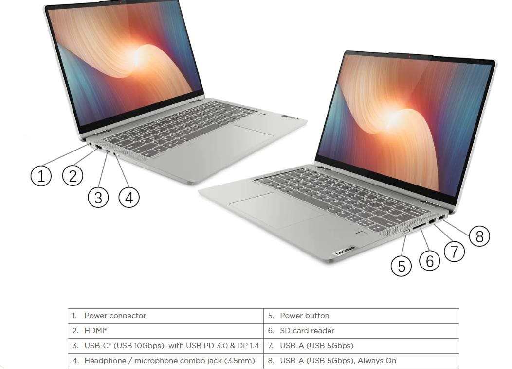 Typ zařízení:Konvertibilní; Operační systém:Windows 11 Home; Řada procesorů:AMD Ryzen 5; Model procesoru:AMD Ryzen 5 5500U; Výkon CPU dle PassMark:12709; Počet jader:14; Maximální frekvence procesoru (GHz):4.3; Frekvence procesoru (GHz):1.8; TDP:28; Model grafické karty:AMD Radeon; Velikost paměti RAM (GB):16; Úhlopříčka displeje ("):14.