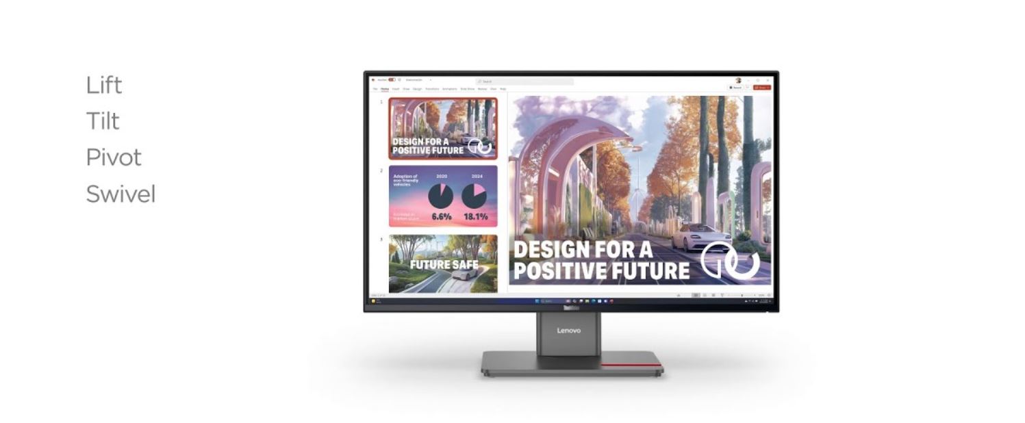Monitor ThinKVision s ultra tenkĂ˝m rámeÄŤkem ze všech ÄŤtyĹ™ stran ladĂ s kaĹľdĂ˝m modernĂm pracovnĂm prostĹ™edĂm.