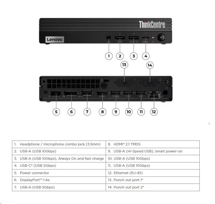 LENOVO PC ThinkCentre M70q Gen 5 Tiny - i3-14100T,8GB,256SSD,HDMI,DP,Int. Intel UHD 730,W11P,3Y Onsite