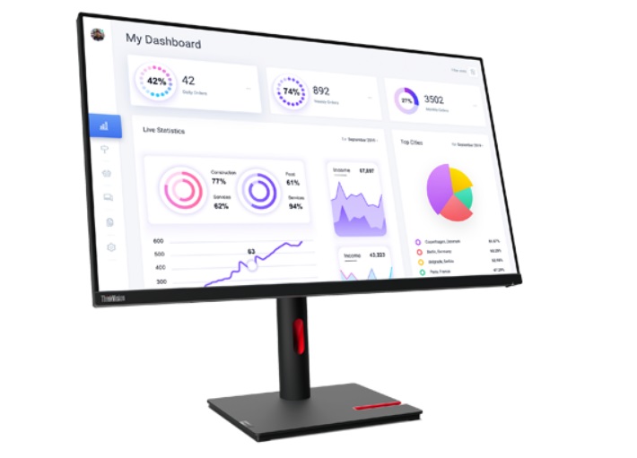 Monitor ThinkVision T32p-30 se pyšní ultra širokým 31,5palcový IPS displejem s rozlišením 3840 × 2160 UHD, který díky větší ploše zobrazuje jemné detaily ve větší velikosti, a tím posiluje efektivitu práce. Bezrámečková konstrukce ze tří stran dodá moderní vzhled jakémukoli pracovnímu prostředí a pokud využijete propojení více monitorů, získáte spojitou zobrazovací plochu z několika různých obrazovek. Monitor ThinkVision T32p-30 je vícero způsoby šetrný ke zraku. Jednak využívá technologii Natural Low Blue Light, která omezuje vyzařování škodlivého modrého světla, ale také reprodukuje nezkreslené barvy, takže se vaše oči neunaví ani po hodinách práce.