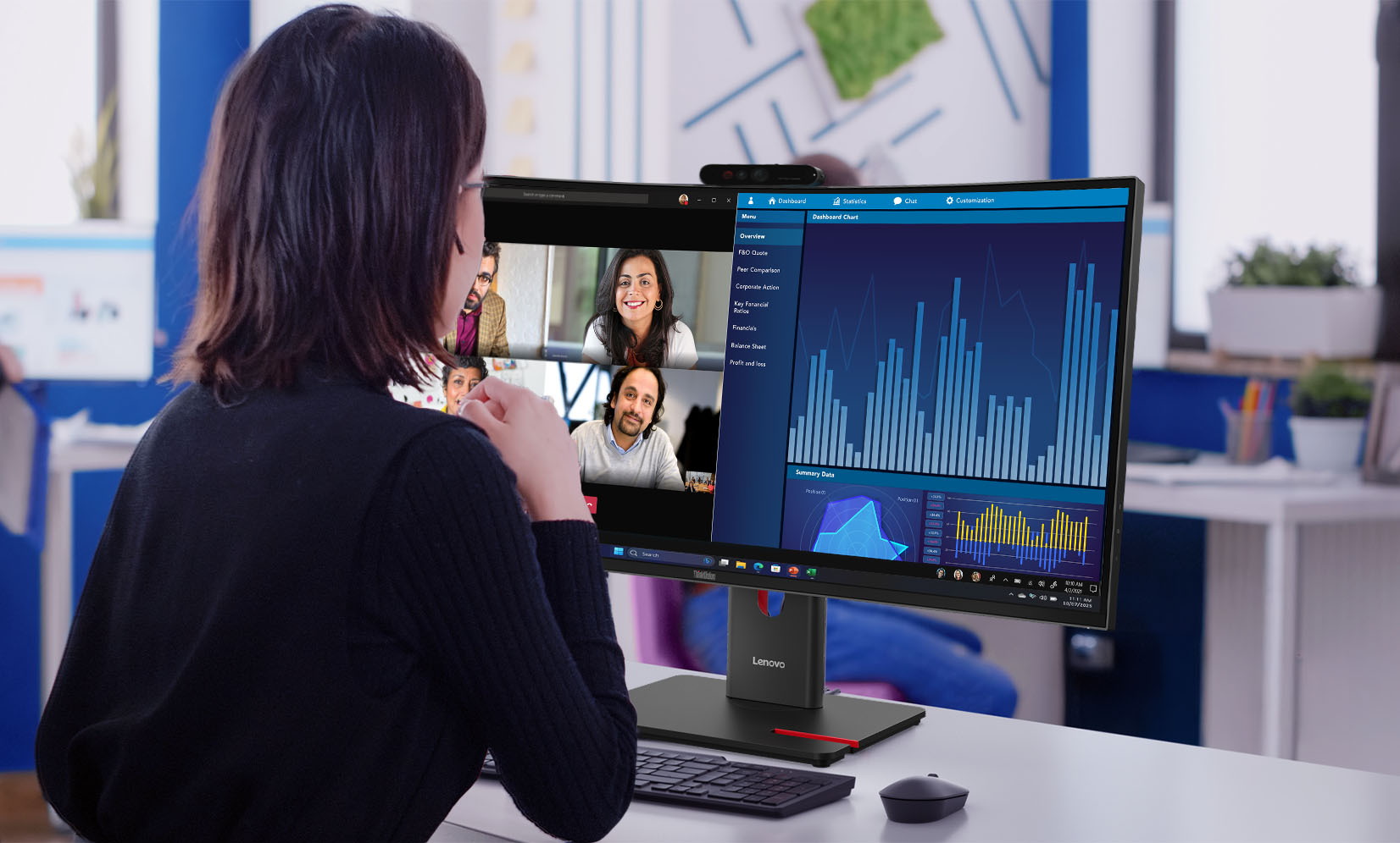 ModulárnĂ monitory ThinkVision jsou kompatibilnĂ s pĹ™ĂslušenstvĂm jako webkamery, soundbary a dalšĂmi zaĹ™ĂzenĂmi. Lze je ergonomicky nastavit podle potĹ™eby.