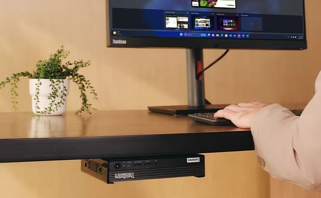Kompaktní počítač ThinkCentre M75q Gen 5 Tiny PC šetří místo a vejde se téměř kamkoli. Umístěte jej vertikálně nebo horizontálně. Připevněte jej pod stůl, umístěte na polici nebo si vytvořte vlastní modulární zařízení pomocí našeho řešení Tiny-in-One (montážní držáky a monitor Tiny-in-One se prodávají samostatně). Ať už v přední kanceláři nebo v zázemí, tento malý počítač dodá každému pracovnímu prostoru velký styl. Navíc podporuje až tři monitory.