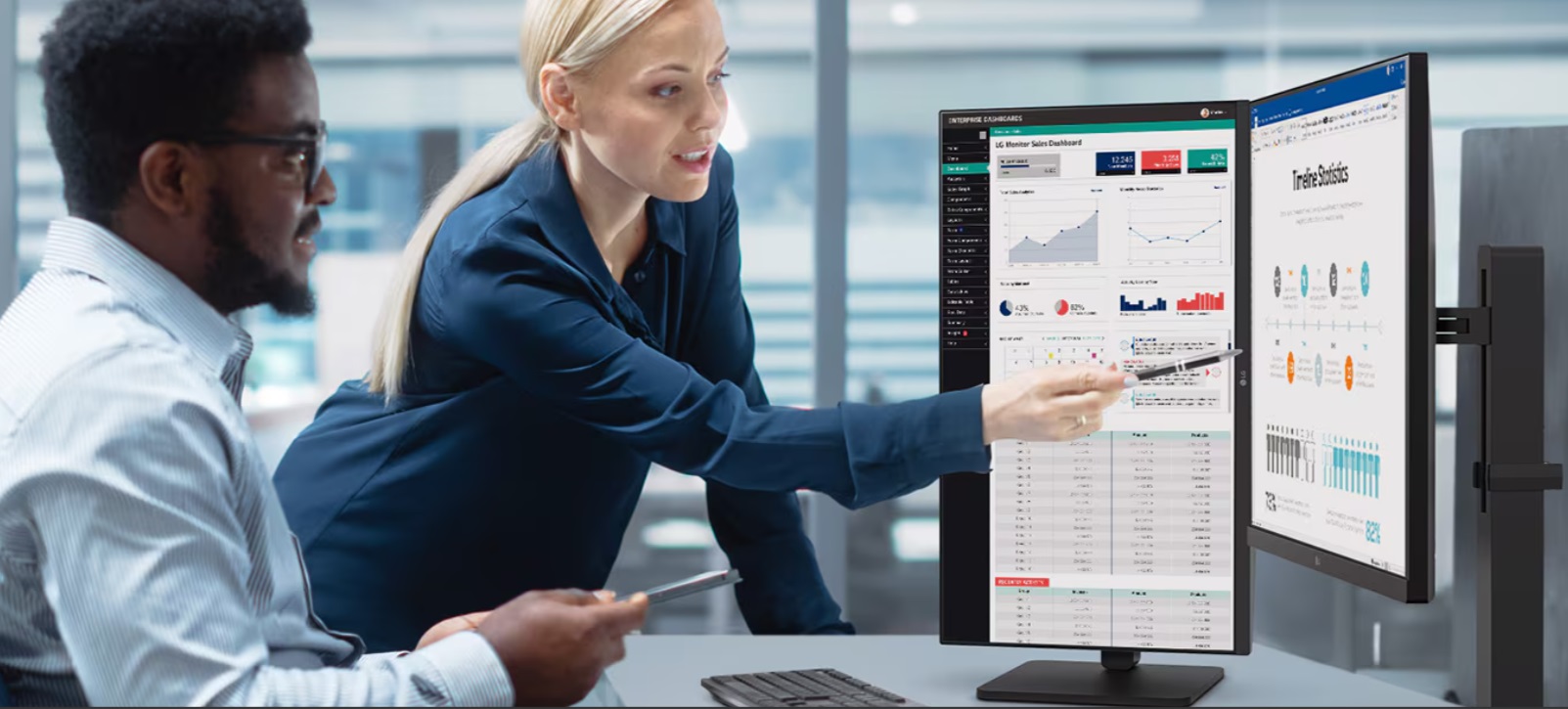 Tento všestranný monitor dokáže díky jasnému displeji IPS a téměř bezrámečkovému provedení na třech stranách pokrýt různé práce na mnoha místech, například v kancelářích, veřejných institucích a zákaznických službách.