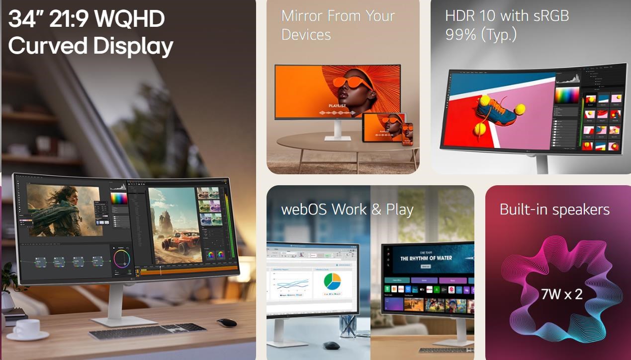 Přizpůsobte se jakémukoli úkolu nebo prostředí díky nespočtu možností. Díky systému webOS můžete spravovat úkoly z domácí kanceláře i bez počítače a zároveň si užívat bohatou nabídku obsahu – pro dokonalou rovnováhu mezi prací a zábavou. Ultraširoký 34palcový displej s poměrem stran 21:9 nabízí dostatek prostoru pro multitasking i pohlcující sledování, což z něj dělá ideální řešení pro práci i volný čas.