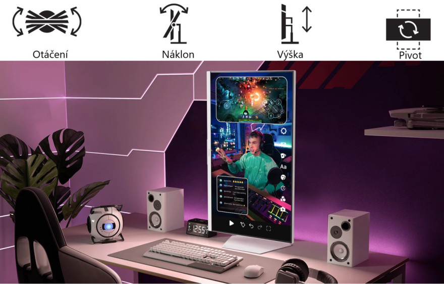 Naklápění monitoru: Tilt/ Height/ Swivel/ Pivot