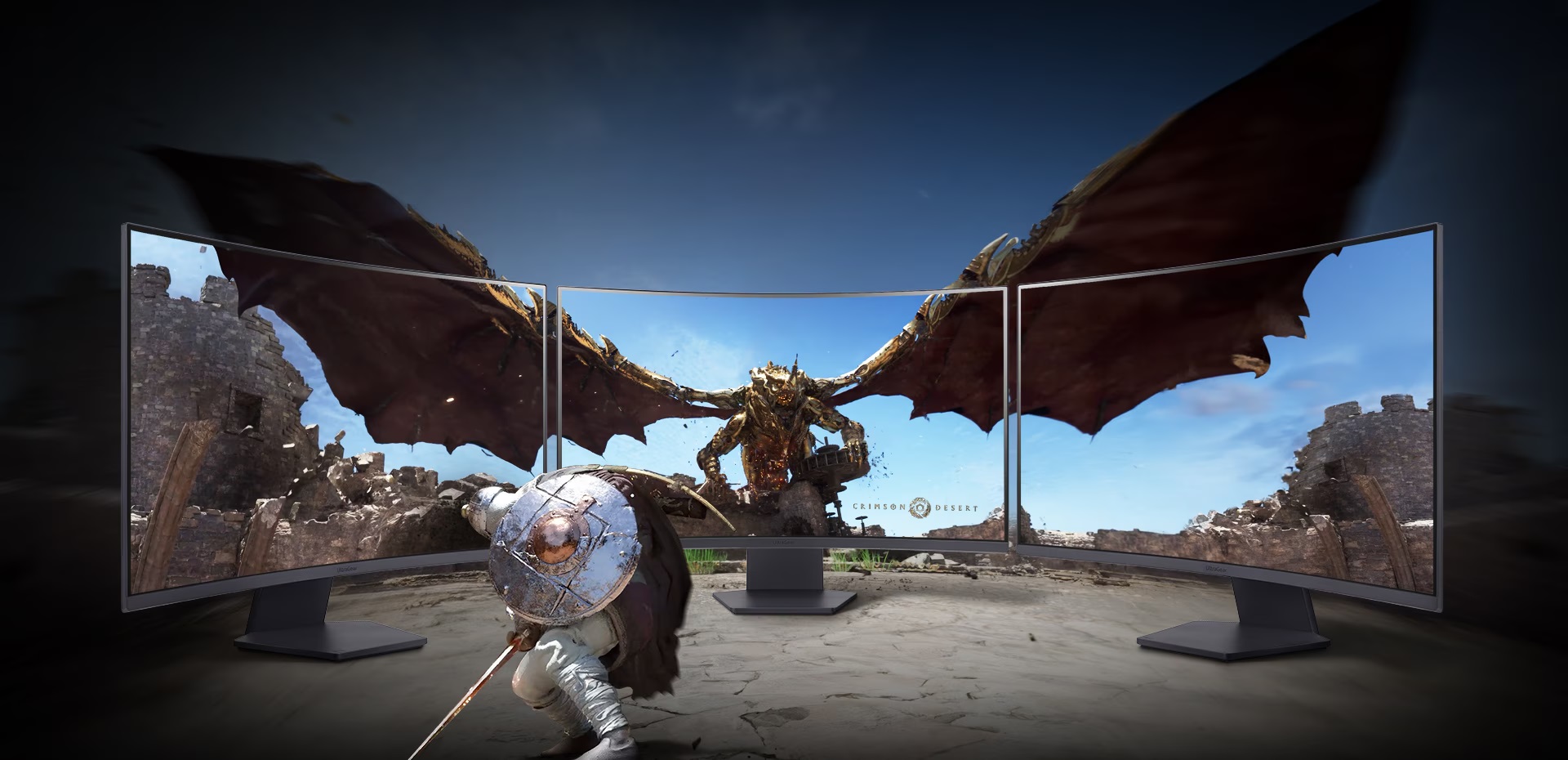 Zlepšete svůj herní zážitek díky třístrannému designu prakticky bez okrajů pro pohlcující pohled a základně s nastavitelným sklonem, která vám pomůže hrát hru pohodlněji. Jeho nepřehledný stojan ve tvaru písmene L zabírá minimální prostor na stole, což vám umožní minimalizovat mrtvý prostor.