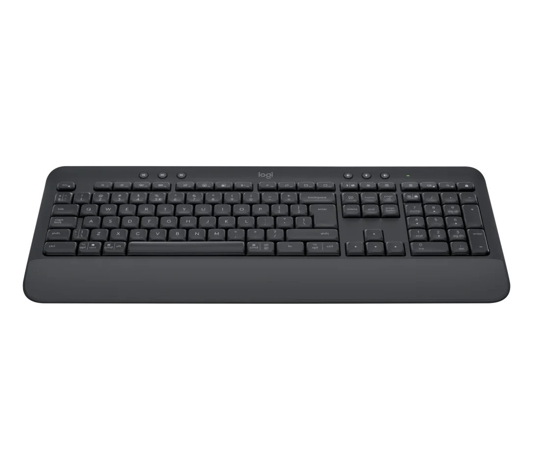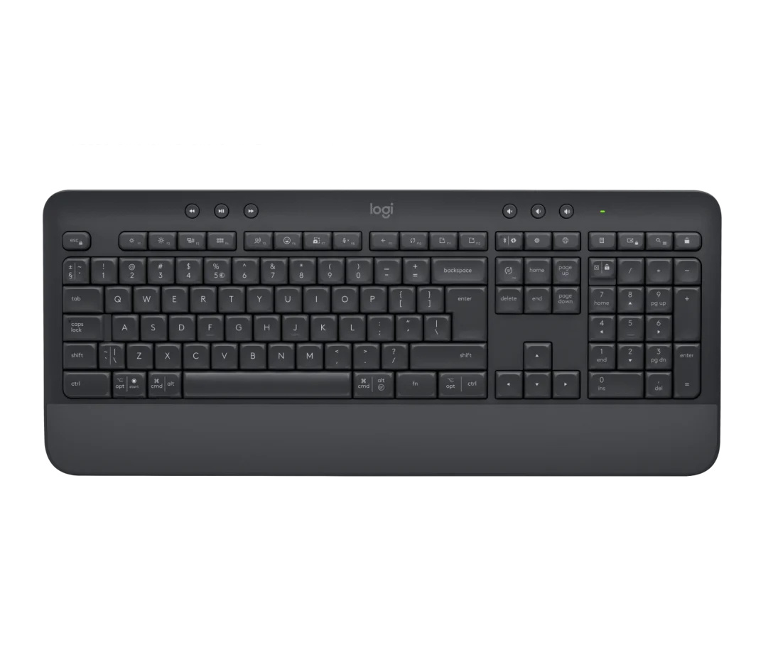 Klávesnice SIGNATURE K650 dokonale vyhoví vašim každodenním potřebám v práci díky vylepšeným zkratkám a integrované opěrce dlaně. Získejte pohodlí potřebné pro dlouhé hodiny práce u stolu. Díky provedení odolnému proti polití (až 60 ml), snadnému čištění a životnosti baterie 36 měsíců (Životnost baterie se může lišit v závislosti na uživateli a podmínkách používání) ji můžete pohodlně a snadno přenášet, aniž by vám překážely kabely.