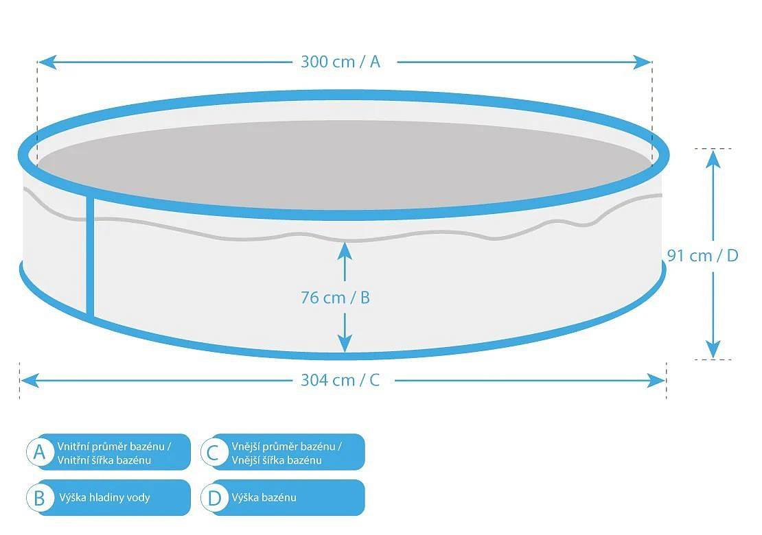 - síla bazénové folie: 0,25 mm / síla stěny plechu: 0,4 mm