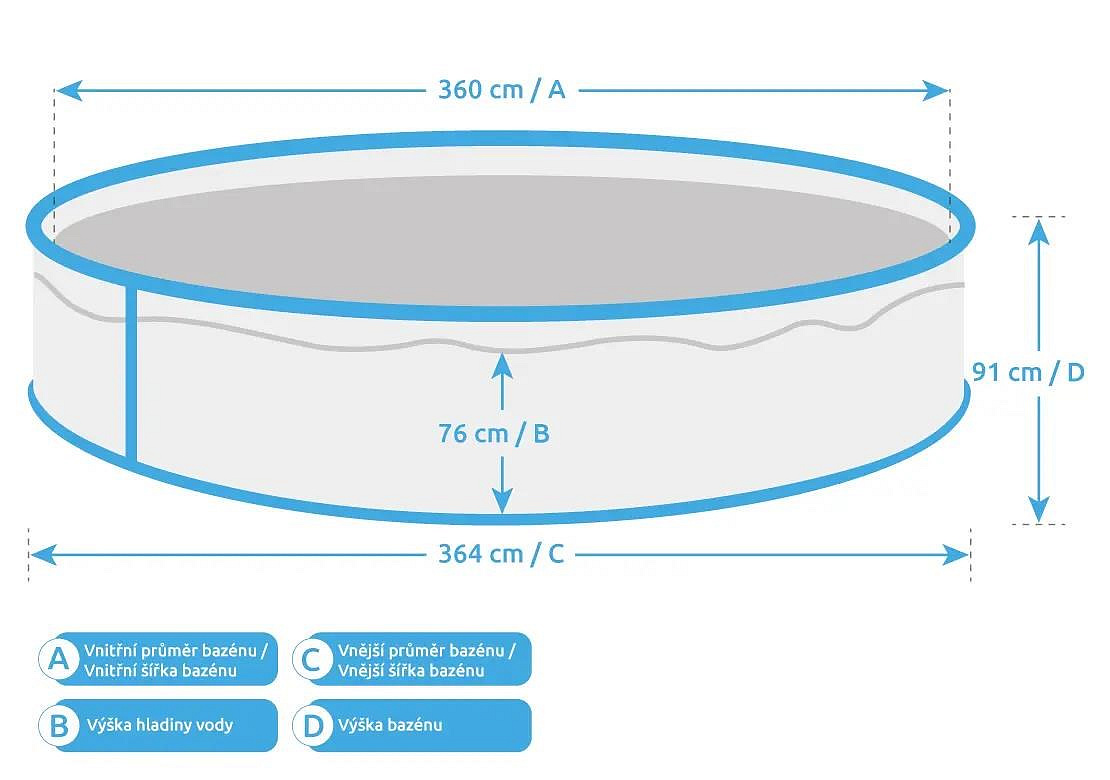 | Průměr bazénu | 3,66 m |