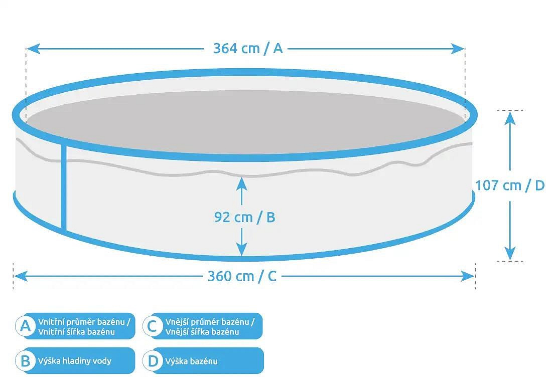 - síla bazénové folie: 0,25 mm / síla stěny plechu: 0,4 mm