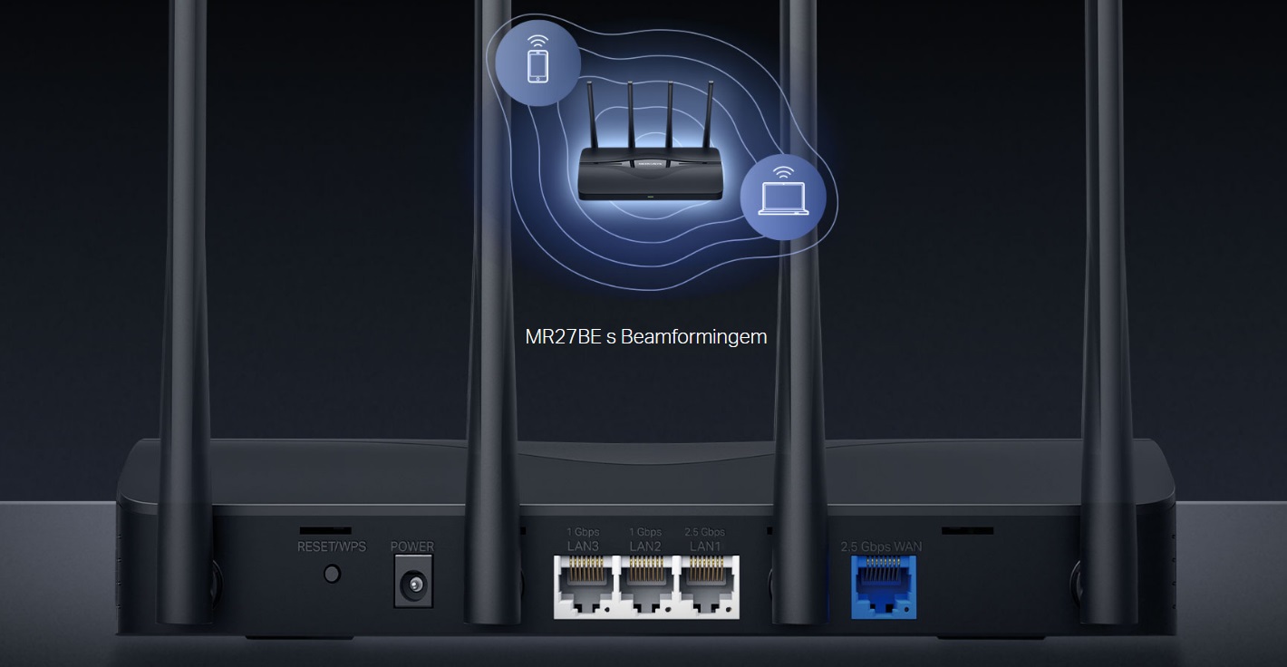 Je vybaven 1× portem WAN 2,5 Gb/s, 1× portem LAN 2,5 Gb/s a 2× gigabitovými porty. MR27BE vám umožní plně využít rychlost širokopásmového připojení. Připojte k portům počítače, chytré televizory, herní konzole nebo zařízení NAS a získejte bleskurychlé kabelové připojení.