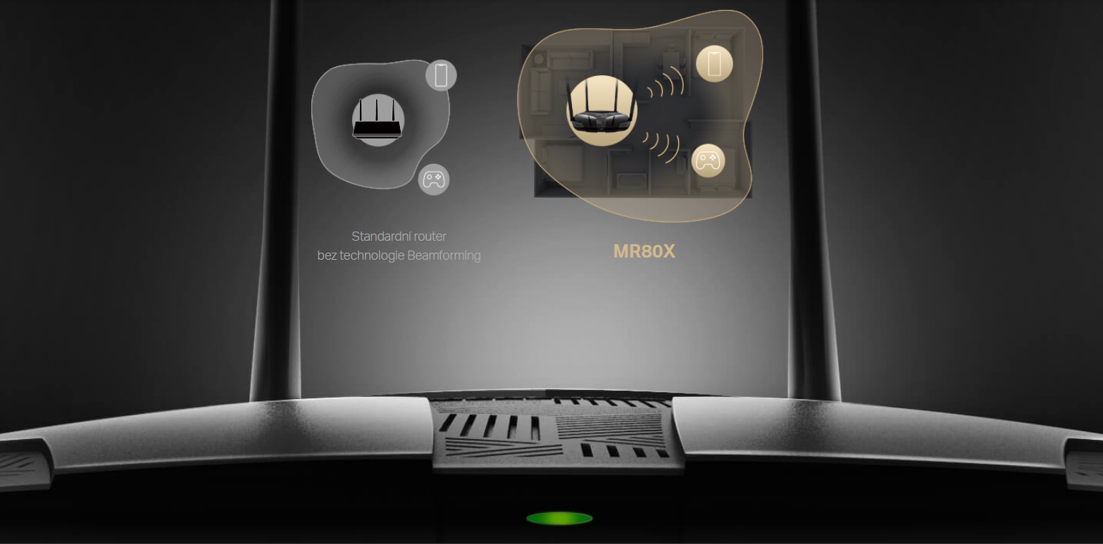 Smart Connect umožňuje jednotce MR80X používat stejná nastavení bezdrátové sítě pro všechna pásma. MR80X vyrovnává síťovou poptávku a přiřazuje zařízení k pásmu s nejlepším signálem a rychlostí. Vaše zařízení tak budou optimálně fungovat, když se budete pohybovat po domě.